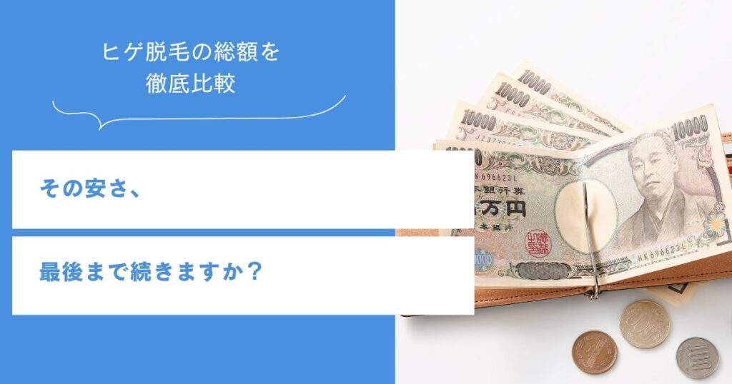 「ヒゲ脱毛をしたいけど、サロンとクリニックって料金が全然違う…」「結局、総額でいくらかかるんだろう?」 ヒゲ脱毛を始めるとき、誰もが気になるのが料金の問題。特に脱毛サロンは「安い」というイメージがありますが、本当にそうなのでしょうか? この... -